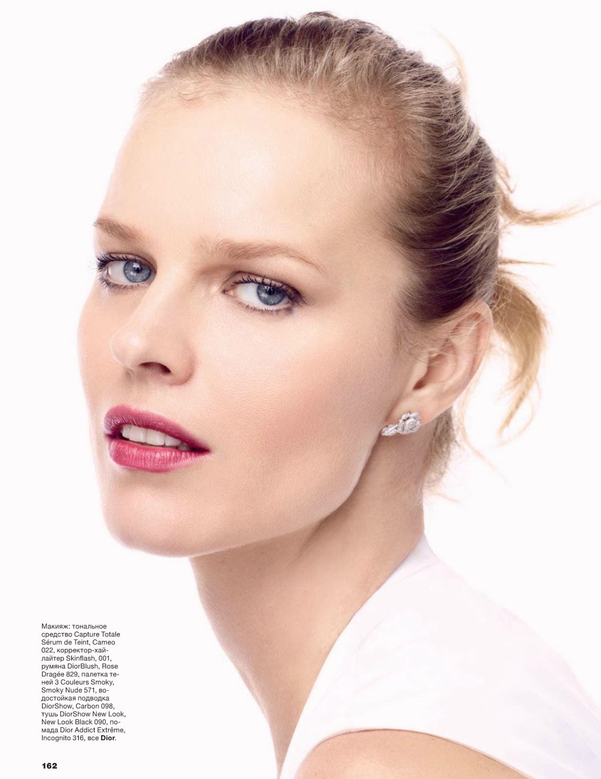 Некоторые данные о Еве: рост — 180 см, вес — 60 кг, 95-62-92, цвет глаз голубой, крашеная блондинка, работает в модельном агентстве Metropolitan Models.