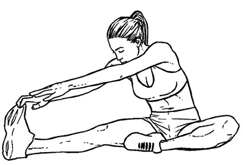 - Руки вытянуть вперед как можно дальше, чтобы ощущалось растяжение в мышцах ног.